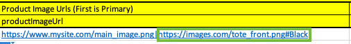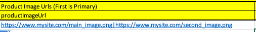 |) following the primary product image - Then, enter additional product image URLs each separated by the pipe symbol (