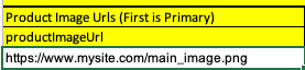 Note: Don't add spaces between URLs and pipe separators.- Your product image URL cell should look similar to this: